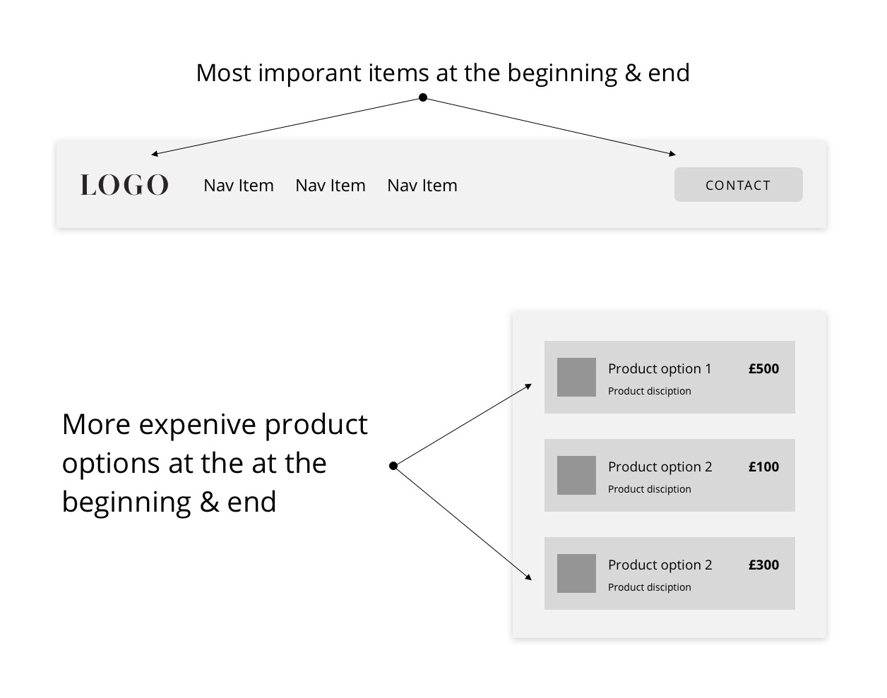 Imagine you’re selling a new product. By highlighting its best feature at the start and offering a tempting deal like “free shipping” at the end, you create memorable bookends. Even if visitors leave, these key points are more likely to stick with them, encouraging them to return.